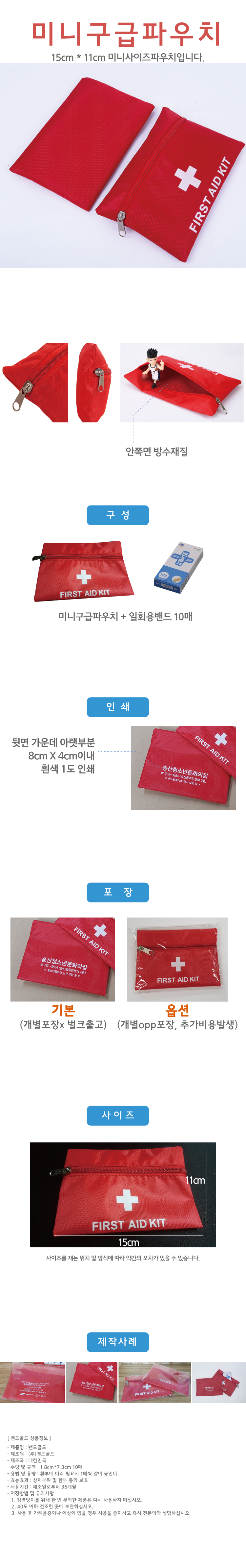 미니 구급 파우치, 일회용 밴드 10매 포함